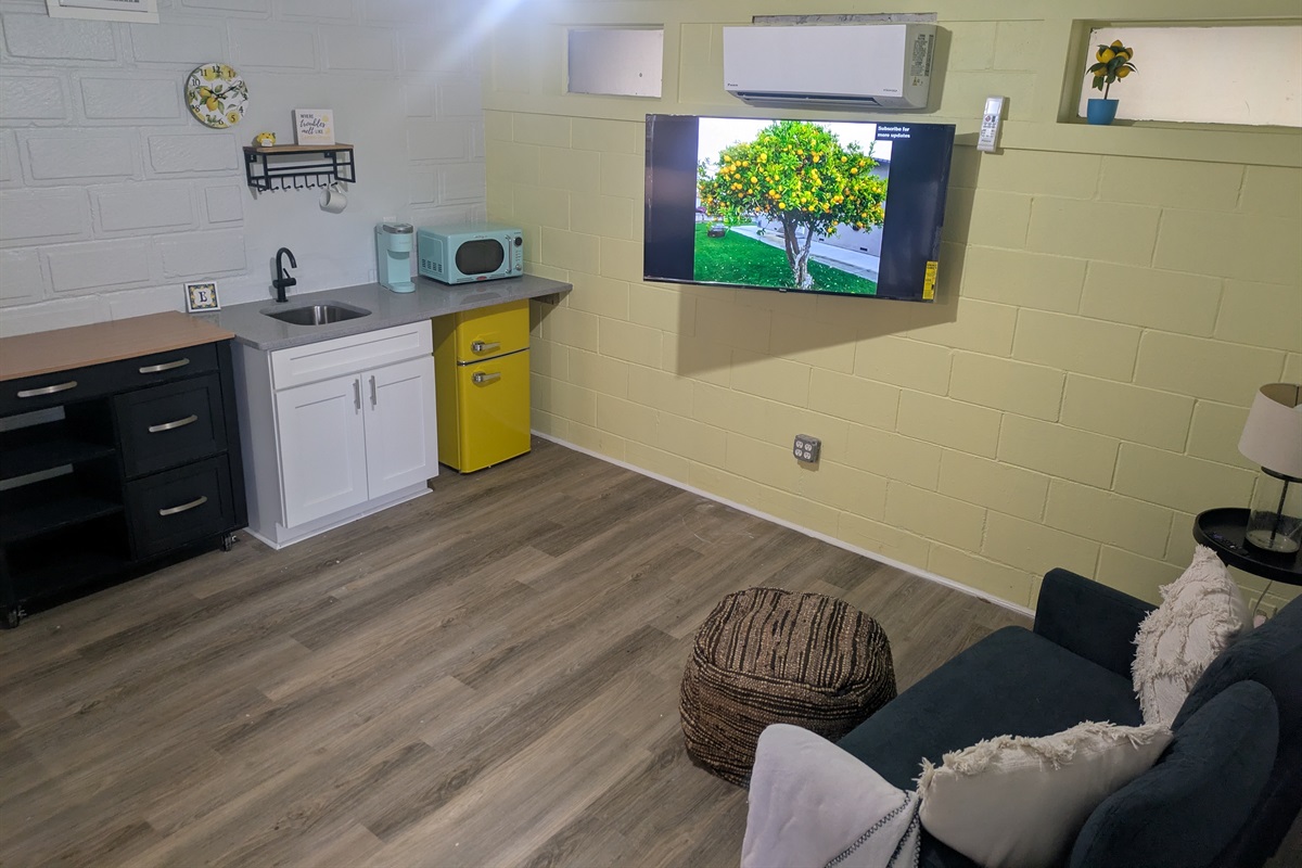 Inside the Casa Limón A, you'll find a beautifully refurbished vintage home with a mix of heritage and modern conveniences. You'll enjoy classic and crisp linens, soft towels, and a cute kitchenette perfect for simple meals at home, morning coffee and breakfast. Gather outdoors in the spacious park like yard (perfect for taking the dog out). Wake up to the scent of fresh coffee as you admire the peaceful neighborhood from the front room.