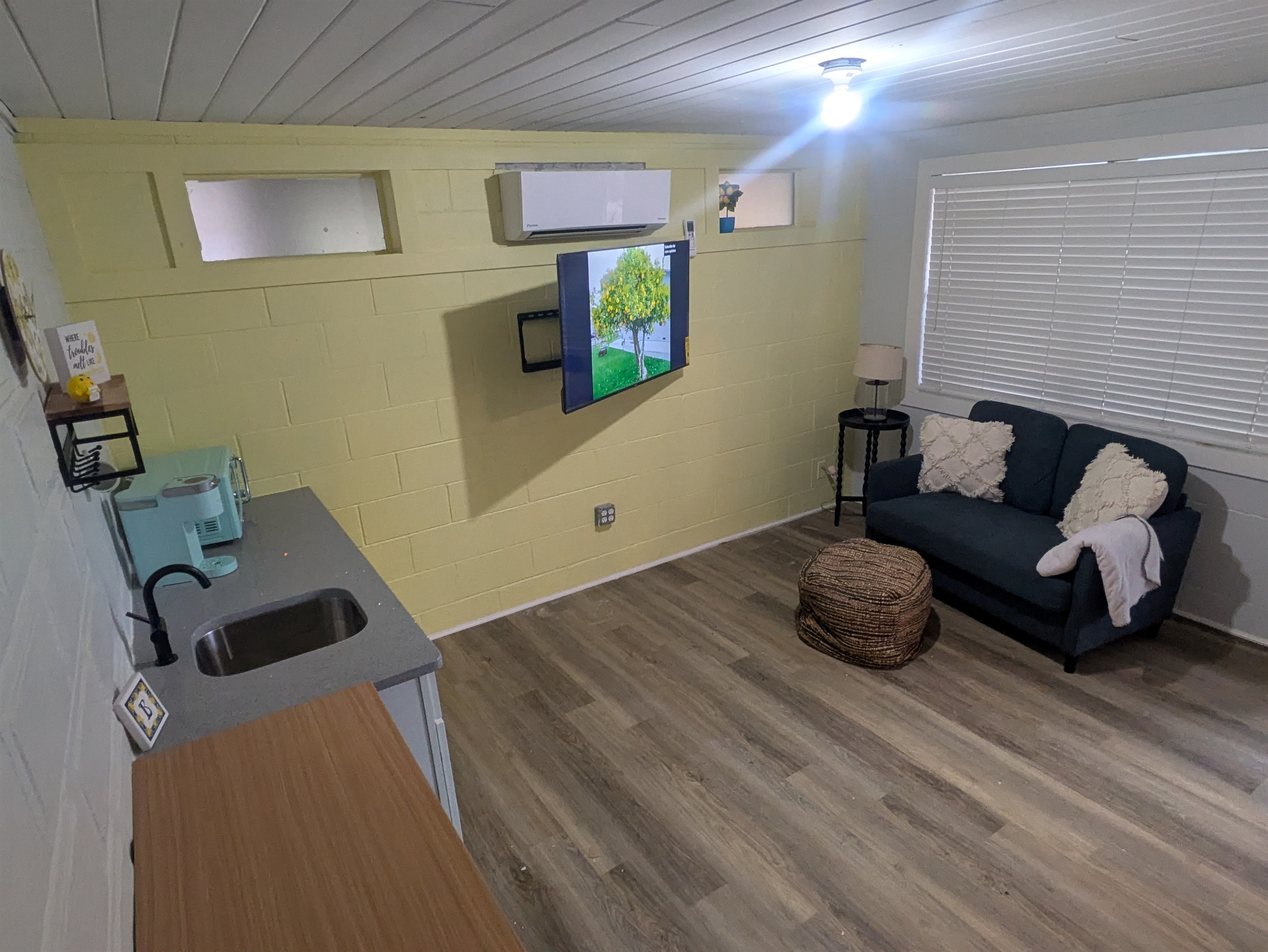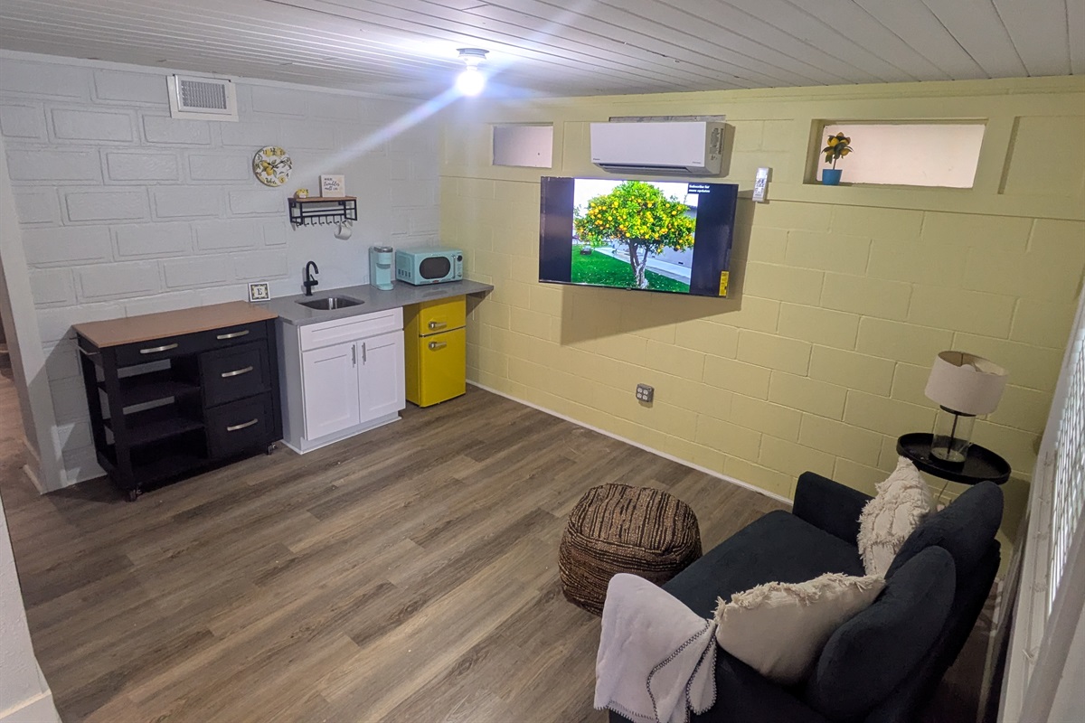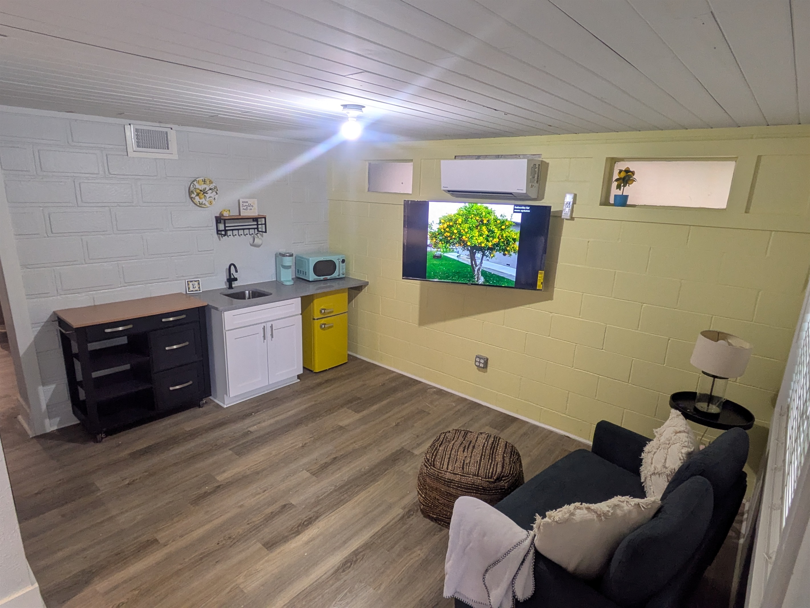 With one quaint bedroom and a queen size bed, a living space connected to the kitchenette with mini size appliances and a full bathroom, this apartment is the perfect size for a couple traveling together. St Augustine is the perfect romantic town to get away to celebrate an anniversary or honeymoon!